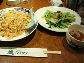 晩飯は少し落ち着いて食べたかったので、中華ファミレスのバーミヤンに入る。食べたのはチャーハン、それと、あさりと青菜炒め。