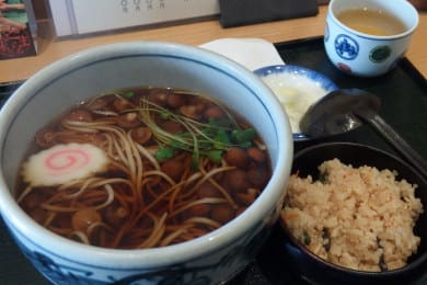 食べたのはなめこそば。ランチタイムにサービスで小さい五目ご飯が付くのは3年前と同じ。