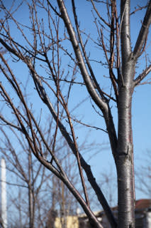 枝には固い状態のつぼみを見ることができる。でも、これが開くのはまだ2ヶ月以上先だ。