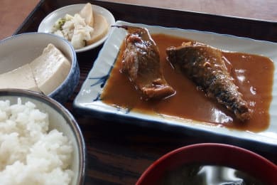 さばみそ定食を食べる。
