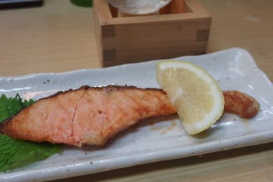 鳥さしと串焼き類を食べたあとは、鮭の塩焼。