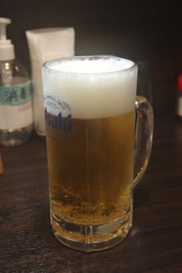 カウンター席は4席しかなかったが、そのうち1つに通される。最初に生ビールを注文。