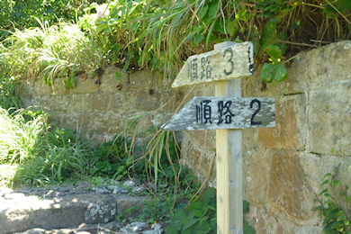 大きな島ではないので、ぐるっと一周するルートはない。順路2と順路3の標識が現れ、まずは順路2で終点まで行ってからこの場所に戻ることになる。