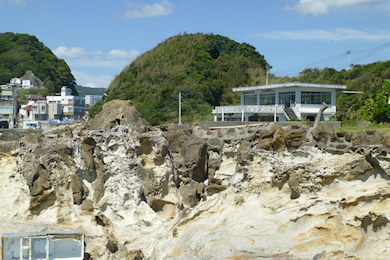 この岩場のすぐ先がさきほどの入り口建物。