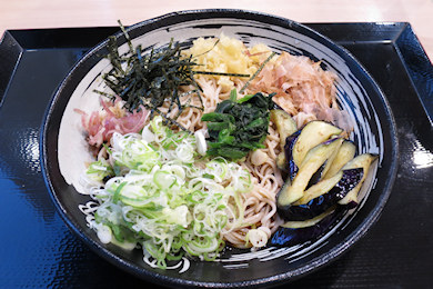 昼飯にしっかりと食べたから、晩飯は軽めにして、ゆで太郎・もつ次郎で冷し薬味そば。