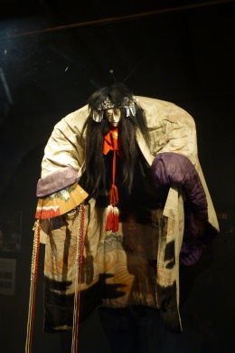 この不気味な顔の人形は写真の隅のほうに「玉梓」と書かれているが、正確には「玉梓の怨霊」。見ていたから覚えているが、怨霊になる前の玉梓は他の女性登場人物と同じく、ふつうの人間の姿だった。